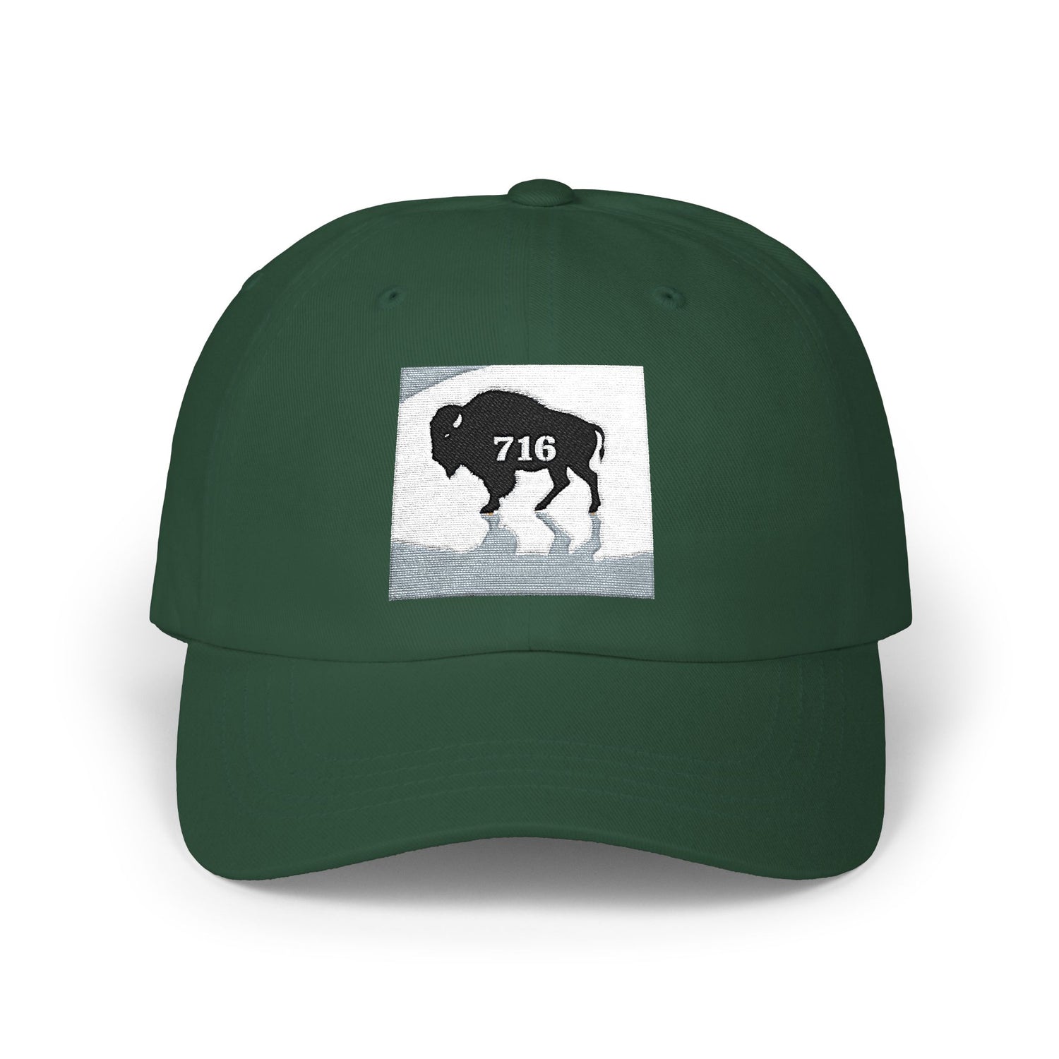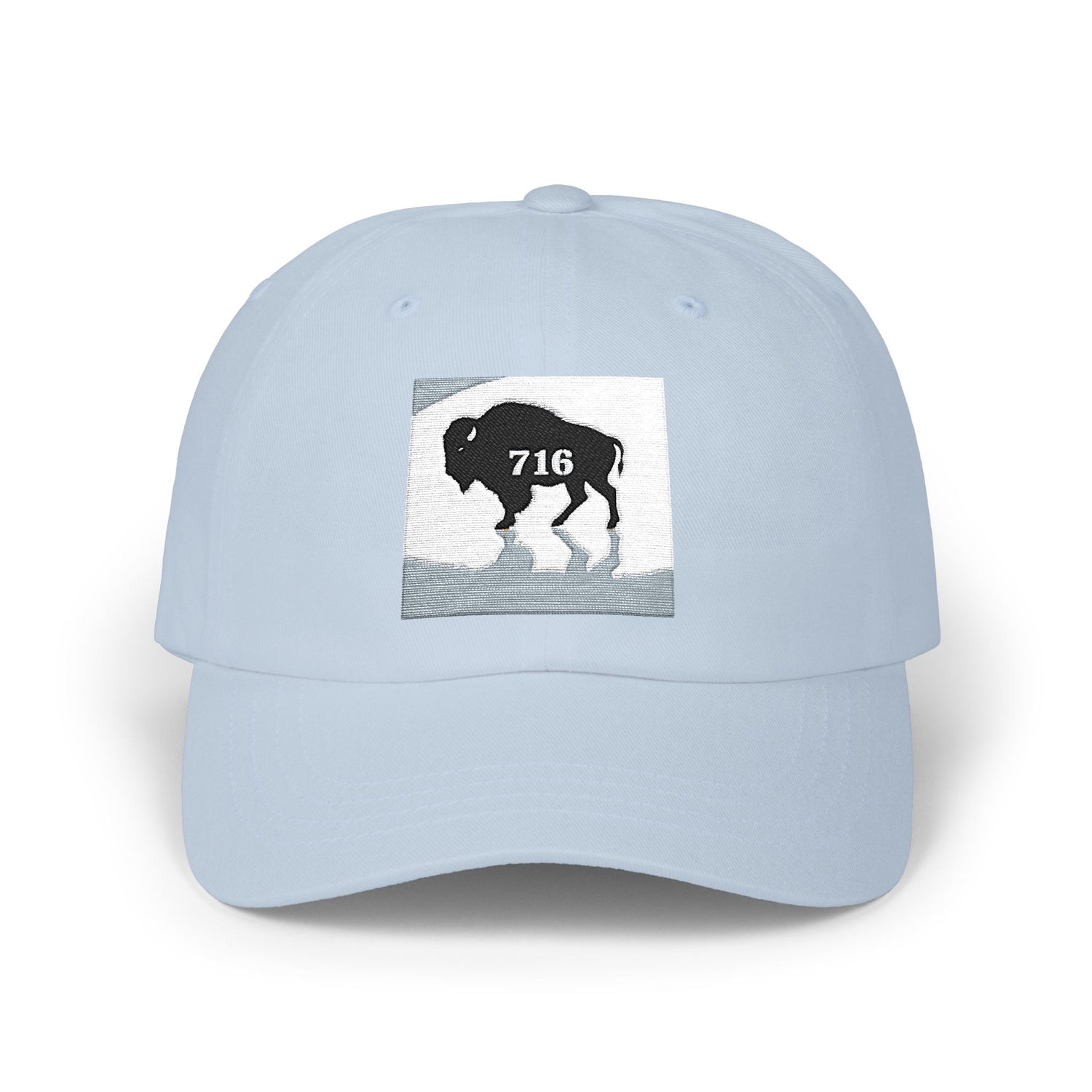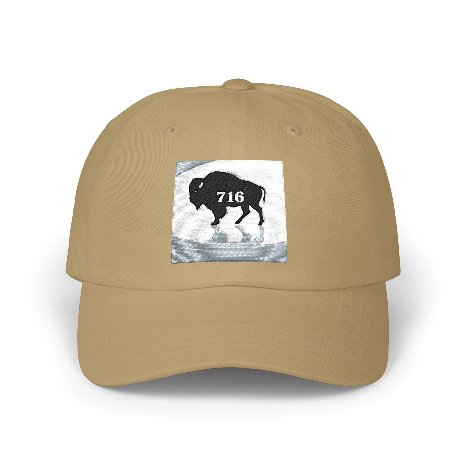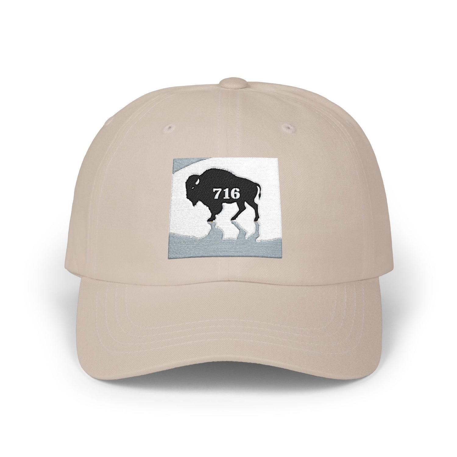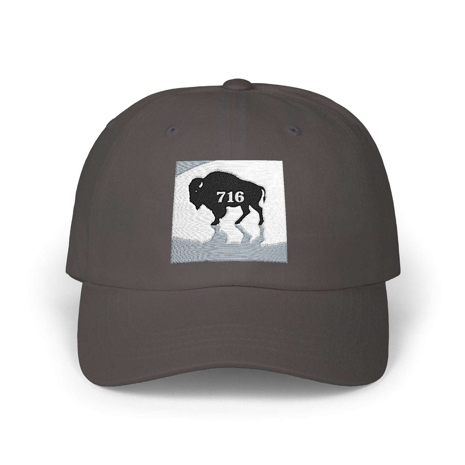 A lived-in, laid-back cap that wears like a familiar companion. This cotton dad cap features a simple embroidered bison silhouette with the number 716—small, weathered, and quietly confident. The low-profile, unstructured shape sits low on the brow and breaks in with you over time, while the pre-curved visor and antique brass hideaway strap give it a subtle, vintage look. Wear it out for slow mornings at the café, weekend walks through the park, or while cheering at local games. It settles into the background while still saying where you belong.